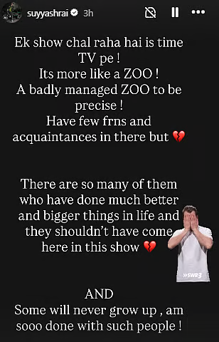 Former Bigg Boss 9 contestant and singer Suyyash Rai has sparked a social media firestorm after taking a sharp, indirect dig at the newly launched reality show, The 50. In a scathing Instagram Story posted on Friday, February 6, 2026, Rai compared the high-stakes competition to a “badly managed zoo.”