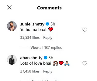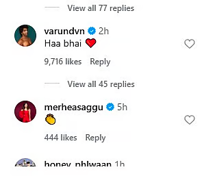 Varun Dhawan: The actor, who has been trending for his own “viral smile” memes lately, replied with a simple, “Haa bhai!” * Ahan Shetty: Suniel Shetty’s son, who is making a massive career leap with this film, commented, “Lots of love bhai.”