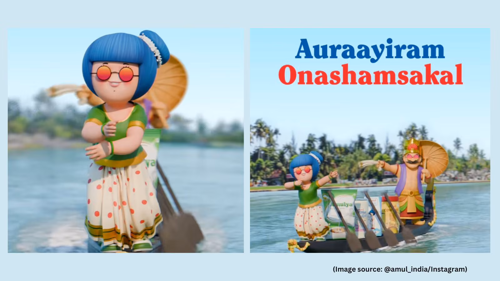 Amul, a brand long celebrated for its creative and relevant advertisements, has once again captured the hearts of social media users with its special Onam ad. The new topical ad, shared by Amul Keralam on Instagram, features the iconic Amul girl dressed in traditional Kerala attire, performing the popular “aura farming” dance on the tip of a boat.