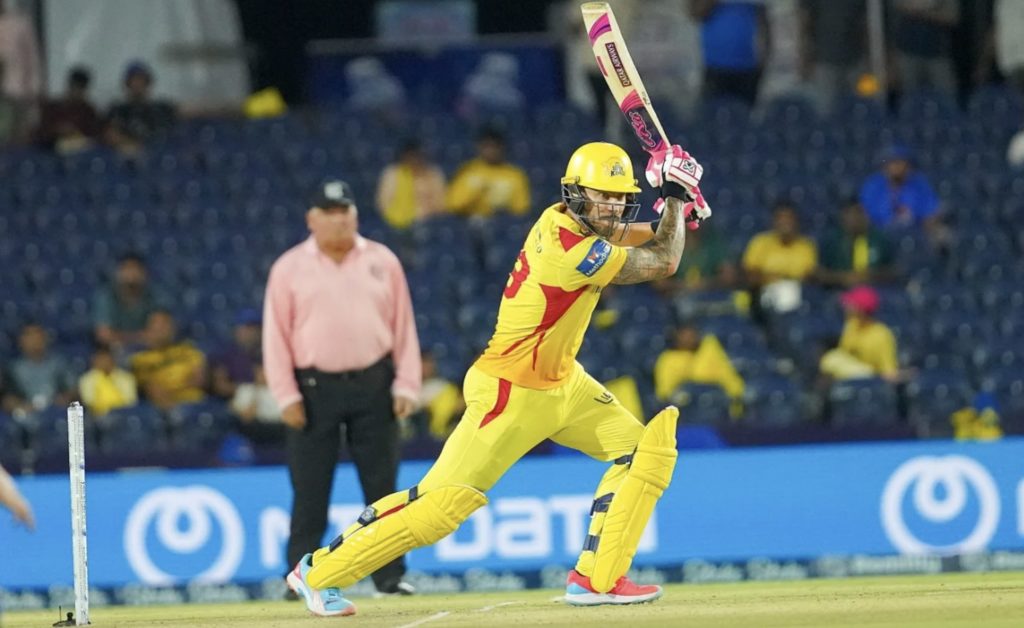 Du Plessis’ innings was not just vital for the match but historic as well — it was his 8th career T20 hundred, equalling the likes of Aaron Finch, Glenn Maxwell, Jos Buttler, Michael Klinger, and Rohit Sharma for the fourth-most T20 centuries. He now boasts 11,755 runs from 420 T20 matches.