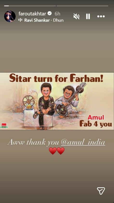 The milestone was celebrated by Amul India with a signature topical doodle titled “Sitar turn for Farhan!”, showing the actor alongside the maestro. Farhan reacted to the tribute on his Instagram Stories with a heartfelt, “Aww, thank you,” accompanied by red hearts.