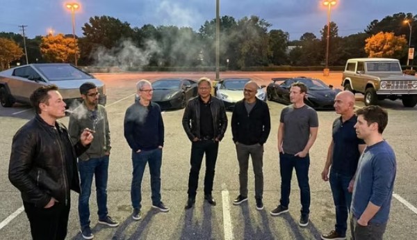 Images featuring Elon Musk, Sundar Pichai, Sam Altman, Jensen Huang, Tim Cook, and Mark Zuckerberg taking a selfie or simply hanging out together have flooded platforms like X.
