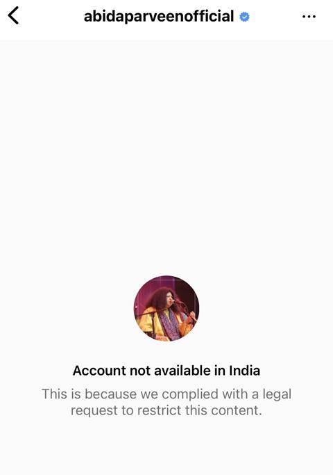 When attempting to access her profile, Indian users are met with a message from Instagram stating: “Account not available in India. This is because we complied with a legal request to restrict this content.”