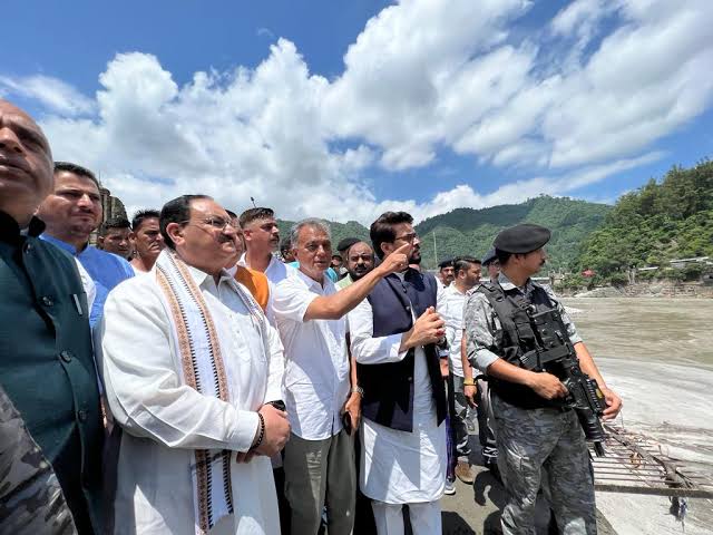 Mandi (Himachal Pradesh), July 9, 2025 : Union Minister and Bharatiya Janata Party (BJP) National President JP Nadda visited the rain-affected Baga village in Mandi district on Wednesday to assess the devastation caused by recent cloudbursts and heavy monsoon rains. He was accompanied by former Himachal Pradesh Chief Minister and Leader of Opposition Jairam Thakur.