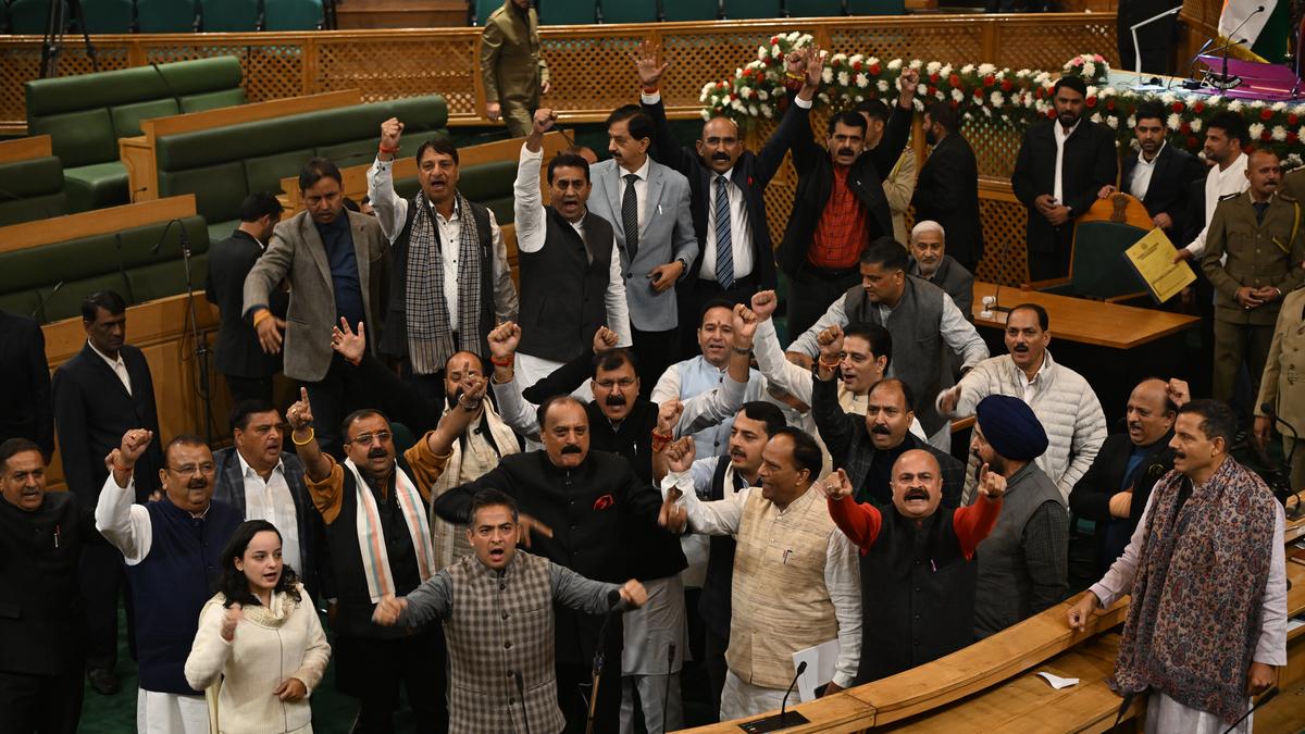 The Assembly echoed with chants of “Jeeve Jeeve Pir Panjal” from Congress and NC MLAs, while BJP legislators countered with “Bharat Mata Ki Jai.” Amid the chaos, the Speaker was forced to adjourn the House.