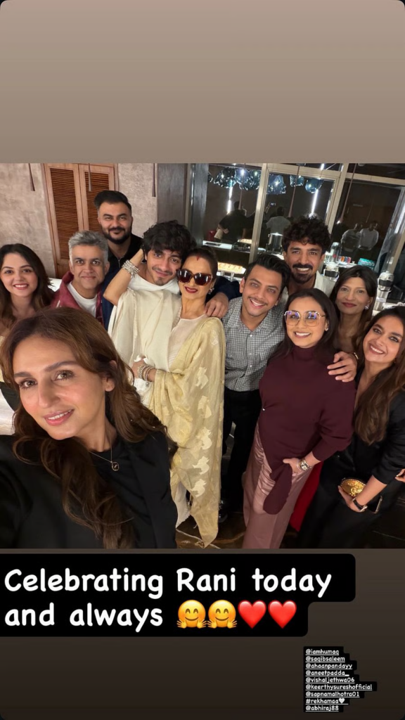 The event’s highlight was a rare appearance by legendary actress Rekha, who was seen sharing a warm moment with Ahaan Panday. Other attendees included Huma Qureshi, Saqib Saleem, Vishal Jethwa (the chilling antagonist from Mardaani 2), and Keerthy Suresh. Director Siddharth P. Malhotra, who worked with Rani in Hichki, took to social media to praise her performance, stating she “rules every frame.”