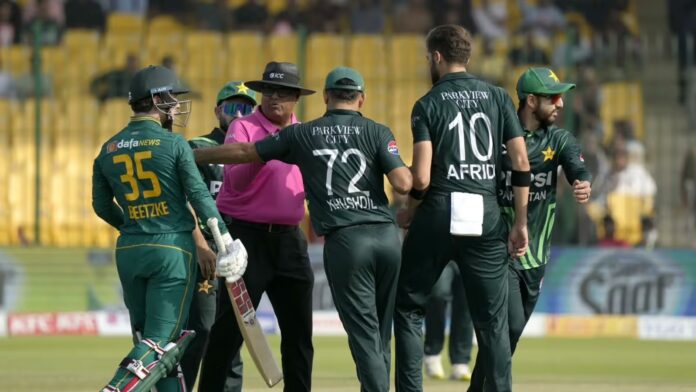 The incident took place in the 28th over of the first innings when Shaheen Afridi positioned himself in Breetzke’s path, causing an unwanted physical encounter. This led to a verbal spat between the two players.