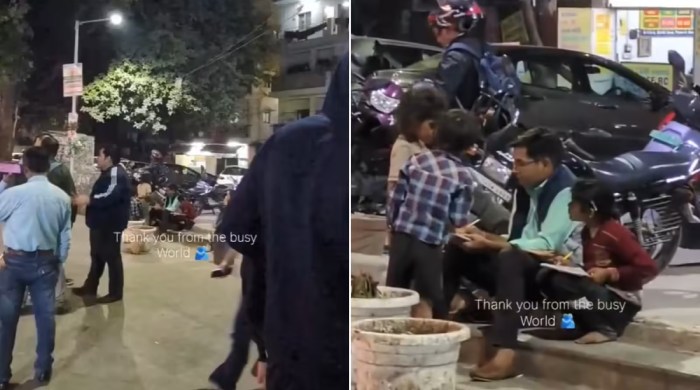 The viral clip shows the man seated on the pavement, surrounded by a group of children who have little to no access to formal schooling. Eschewing the modern trend of seeking digital “clout,” the man is seen patiently explaining lessons, completely indifferent to the cameras or the bustling traffic of Sheikh Sarai.