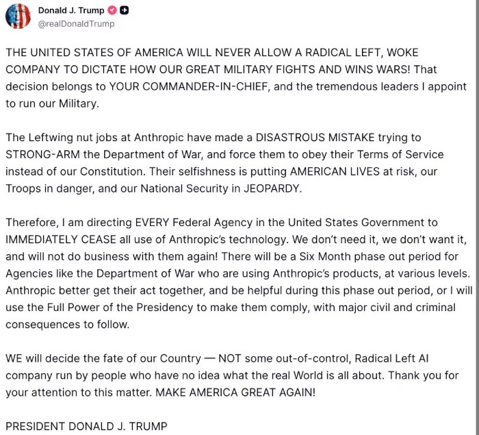 The rhetoric from the White House has turned sharply political. On Truth Social, President Trump branded Anthropic’s leadership as “Left-wing nut jobs” and “radical woke” for trying to “strong-arm” the Department of War. He warned of “major civil and criminal consequences” if the company fails to cooperate during the transition period.