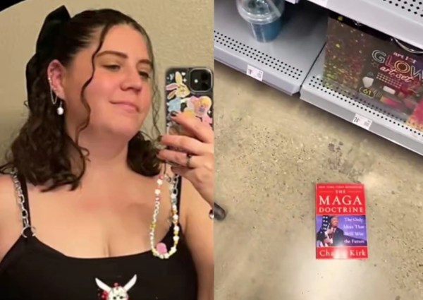Loudon captioned the video: “This unhinged Leftist has GONE VIRAL after recording herself grabbing a Charlie Kirk book and kicking it under a store shelf. It sure would be a shame if this went even more viral and backfired.”