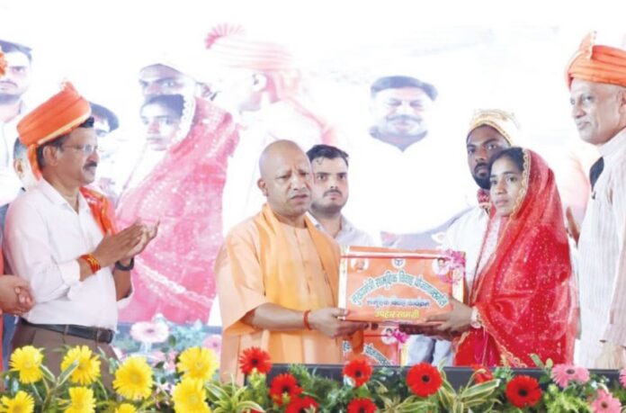 “I can’t attend individual weddings, but I came here leaving all work in Lucknow to bless you all,” CM Yogi said, addressing the crowd. “These weddings involve no dowry, no child marriage, and support from the government regardless of background.”