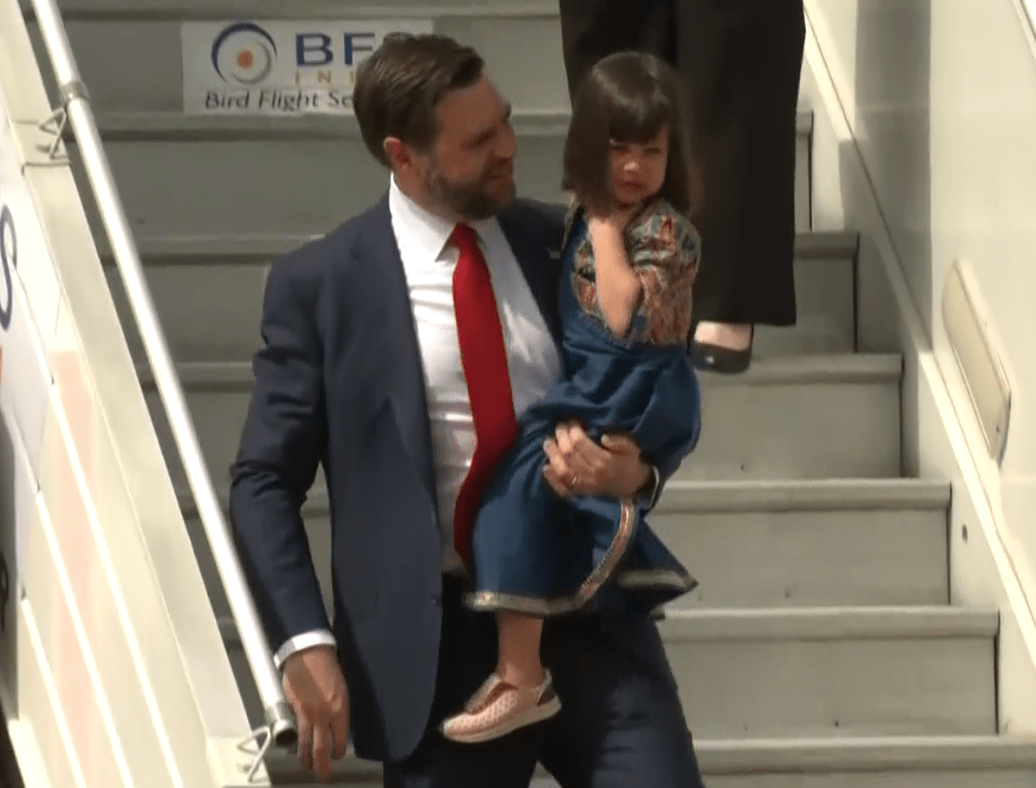 New Delhi [India], April 21– United States Vice President JD Vance kicked off his first official visit to India on Monday morning, arriving in New Delhi with his India-origin wife, Usha Vance, and their three children — Ewan, Vivek, and Maribel — who captured hearts with their traditional Indian attire.