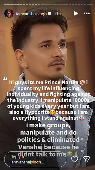 On Prince Narula: Labeling the reality show king a “hypocrite,” Vanshaj accused Prince of manipulating thousands of young kids every year. He claimed Prince represents everything he stands against and played “dirty politics” to remove him.